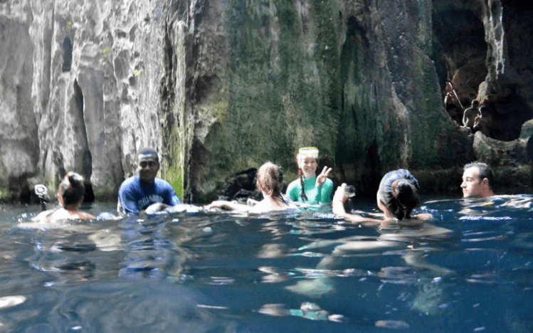 We were then guided to a buoy that could hold about 10 people on it, and float/swim through the cave as the guides told us the legend of the Chief with his betrothed and the 10-headed god Ulutini. We then swam our way back through the cave (this time, it wasn’t so scary).