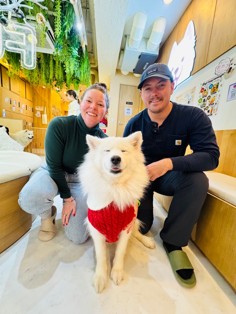 The afternoon challenged me emotionally. We visited a Samoyed dog cafe, a decision that felt heavy given that we had lost our beloved Freya only a week prior. As a fluffy, white Samoyed puppy trotted toward me, for a split second, the muscle memory of reaching out to pat Freya’s head took over and I caught myself almost saying things I would say to Freya. It was a strange thing to seek comfort from the very creature that reminds you of your deepest, rawest ache (even if the creature in question was a Samoyed and not a Bull Arab like Freya). I spent most of the time trying so hard not to cry, the grief of losing my heart dog still so raw and fresh. Even though my heart was aching for Freya, in that Tokyo cafe I felt a tiny piece of my heart begin to knit back together. While the dogs appeared incredibly well-cared for, it brought up those inevitable questions about animal welfare, and I will admit, I have complicated feelings around our participation in an industry that can and does have instances of animal exploitation. Given how deeply I value ethical wildlife experiences, if you’re going to participate in these experiences, I can’t stress enough how important it is to be intentional and only visit accredited places that truly prioritise the well-being of their animals.